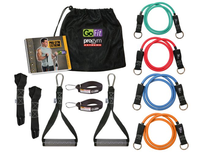 EXTREME PRO GYM If you're looking for an amazing challenge with your resistance tube training, this is the product for you. Developed and designed with the max-trainer in mind, the ProGym Extreme comes with 4 resistance tubes that allow 12 weight combinations up to 140lbs of resistance. Used together or individually, these extreme tubes will help your muscles learn and burn. Master Pack = 2