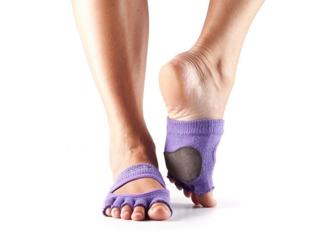 HALF TOE RELEVE Dance inspired Releve has a perfectly positioned leather pad that provides superior traction for turns and stops while cushioning the metatarsal head during lands and releves. See you on the dance floor! -Half toe design lets toes touch surface for a more barefoot experience -Five toe design allows toes to move and spread naturally -Made with organic cotton Stick to your practice™ Woven: 90% Organic Cotton, 8% Spandex, 2% Other Fiber Printed: 50% Leather, 32% Polyester, 16% Cotton, 2% Other Fiber