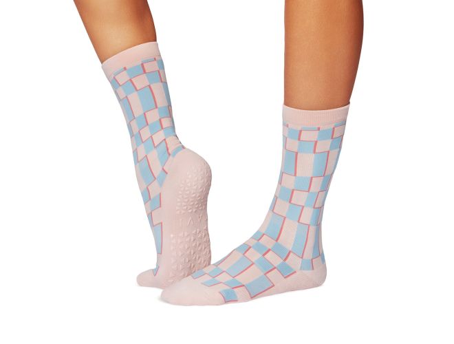Jess Grip Socks is a trendsetter with a lovely anklet height. The anklet height falls between the ankle and calf while Tavi's grip sock pattern safely moves you through your barre, Pilates and yoga classes.