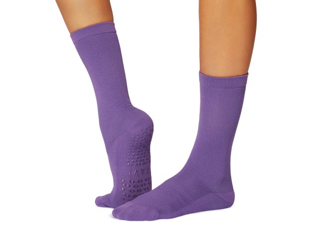 Push your practice with advanced grip technology. The Kai Tec Grip Sock features moisture-wicking TAVI Tec yarn, dual-surface stability grips, and breathable mesh jacquard in a secure crew height design.